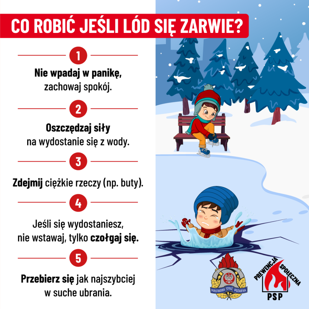 Każdego roku dochodzi do groźnych zdarzeń na zamarzniętych akwenach. Warto wiedzieć, jak zachować się w sytuacji zagrożenia życia.