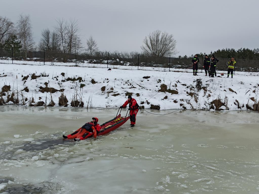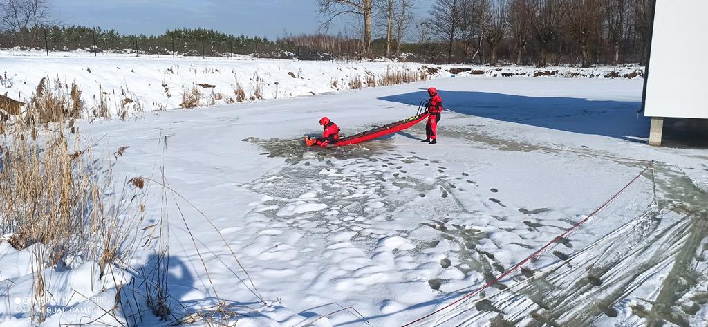 Ćwiczenia opolskich strażaków w zakresie ratownictwa lodowego.