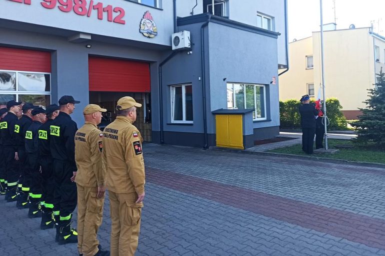W Jednostce Ratowniczo-Gaśniczej Komendy Powiatowej PSP w Opolu Lubelskim odbyła się uroczysta zmiana służby z podniesieniem Flagi Państwowej na maszt.