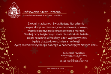14 kwietnia 2025 roku w Komendzie Powiatowej Państwowej Straży Pożarnej w Opolu Lubelskim odbyło się spotkanie z okazji nadchodzących Świąt Wielkanocnych. W uroczystym spotkaniu udział wzięli Kapelan Powiatowy Strażaków ks. Hubert Suszek, Starosta Opolski Dariusz Piotrowski, ...